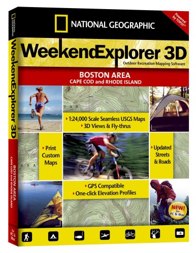 Enjoy the ultimate topographic map experience for your weekend outdoor adventures with the GPS-ready TOPO! Weekend Explorer 3D from National Geographic. This interactive software lets you print photo quality USGS topographic maps of Boston, Cape Cod, and Rhode Island so you won't miss a thing on your excursion. Seamlessly scroll across topo maps covering key sites and enjoy five levels of map detail, including 1:24,000 and 1:100,000 scale topographic maps. This version of Weekend Explorer 3D software features the same great capabilities as the state series products, but is limited in coverage to the following cities and recreational areas: Boston Metro Area, Gloucester, Worcester, Providence, Newport, Manchester, Concord, Keene, New London, Provincetown, Cape Cod National Seashore, Boston Harbor Islands National Recreation Area, Martha's Vineyard, Nantucket Island, Quabbin Reservoir, and more.